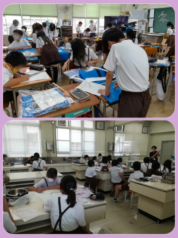 ●6年生 運動会用の「はっぴ」づくり (写真上)