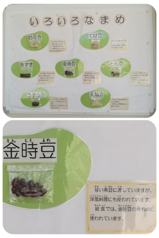 ※給食室の前に「いろいろなまめ」の掲示がしてあります。
