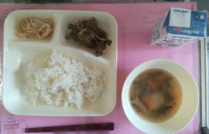 あすの給食は 「チキンレバーかつ」ほか です。(パン食)