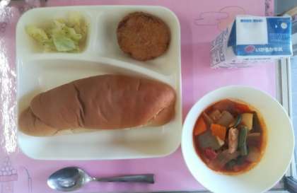 9/13 今日の給食は「チキンレバーかつ」ほか