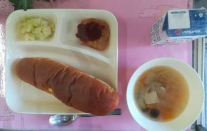 10/14 今日の給食は「トンカツのオーロラソースかけ」ほか