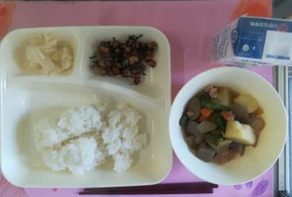12/6 今日の給食は「鶏肉と野菜の煮物」ほか