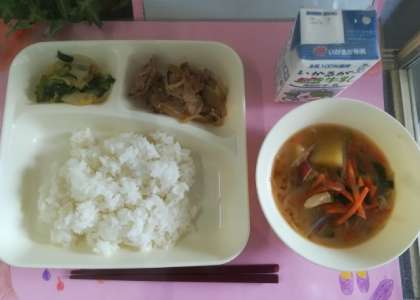 12/13 今日の給食は「豚肉のしょうが焼き」ほか
