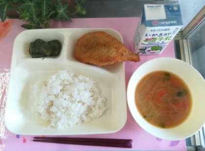 あすの給食は、「さごしのおろしじょうゆかけ」ほかです。(ごはん食)