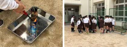 実際に割りばしを燃やして、ものの燃え方を観察しています。