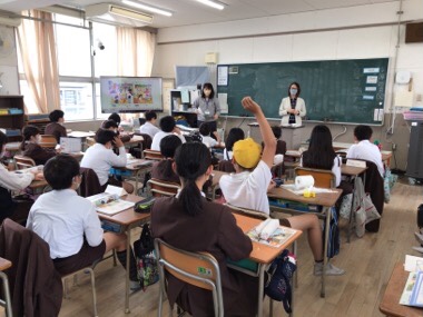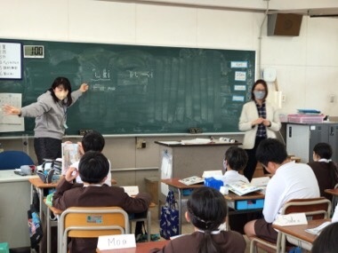この日は、C−NETの先生も授業に来てくれました。アルファベットソングや、名前の言い方などを楽しく学びました。