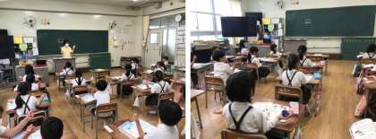 今日の1年生のおんがくでは、音楽に合わせてリズムを打ちっていました。