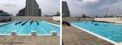 3年生のみんなが、クロールの練習をがんばっています。いい天気で気温も上がり、しっかりと練習ができました!