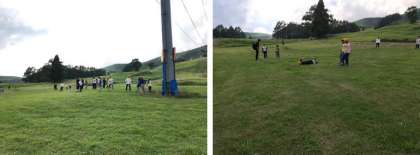 リフトのポールを使ってたくさんの人数で『だるまさんが転んだ』や『虫取り』など、思い思いに高原を満喫していました。