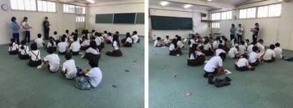 まずは、みんなでそろってこれからの予定などを確認しました。木曜日の委員会活動の時間には、応援団長をはじめ、いろいろな役を決めます。