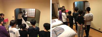 6年 修学旅行 美化係 ふとんの敷き方講習