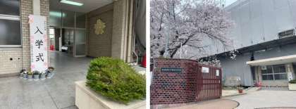 正門の桜や花壇のチューリップが満開となり、とても華やかな入学式となりました。