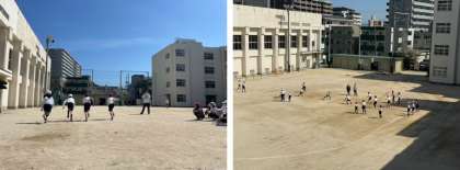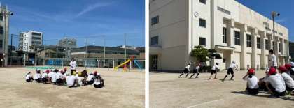 春らしい爽やかな天気のもと、6年生が体育でがんばっていました。
