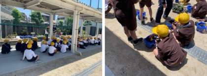 1年生の時に植えたチューリップの鉢を整理して、あらたにオクラの苗を植えました。
