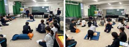 一次救命処置についての座学のあとは、胸骨圧迫、AEDの使い方、人工呼吸の訓練を行いました。