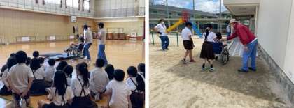 この日は、大阪市 福祉局 心身障がい者リハビリテーションセンターの方々をお招きし、4年生が車いす体験をしました。