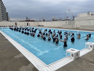 しかしながら、この日は、曇り空の中ですが、プールの授業を行うことができました。