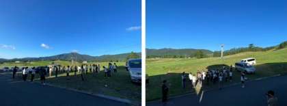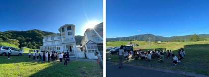 2日目が始まりました。快晴の空のもと、朝の会をおこないました。
