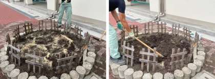 管理作業員さんが、「ひまわりの種プロジェクト」で使っていた花壇をきれいに整理してくださいました