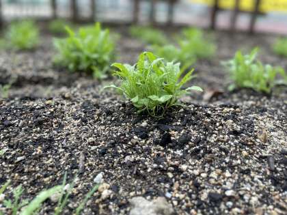 10月の中旬に花壇に植えて発芽したたねダンゴが順調に大きくなっています。
