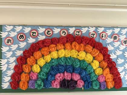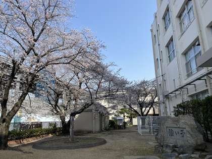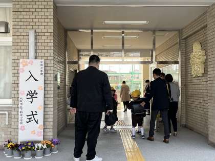 晴天の下、新入生42人が下新庄小学校へ入学しました。