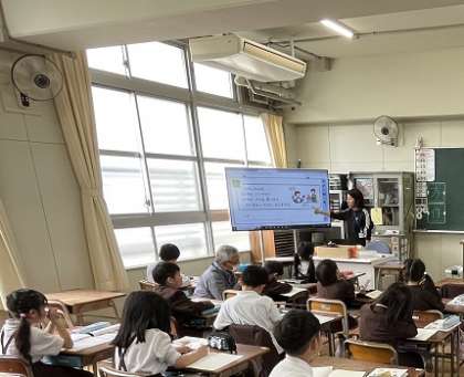 2年生は、2時間目は算数の授業です。2年1組は、読み上げ計算で、1分間で 3と□で10の□の数字を答えるような練習をしました。2年2組は、足し算のひっさんの学習をしました。