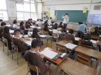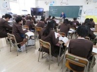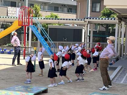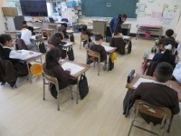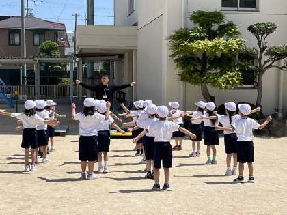3時間目は、1年生の体育です。体操をした後、運動場の遊具の遊び方について説明をきき、実際に使ってみました。