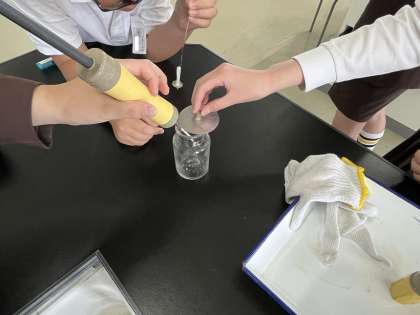 6年1組は、理科で「ものを燃やす前と燃やした後の変化」を実験で確かめました。気体測定器で二酸化酸素の体積の割合を調べています。