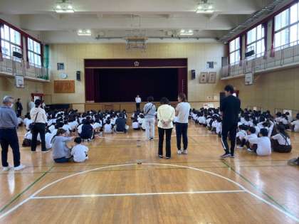 朝の児童朝会では、校長先生から