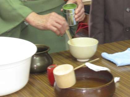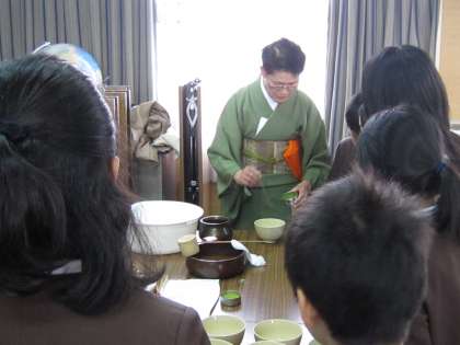 4年生が地域の方をゲストティーチャーとしてお招きして、茶道の