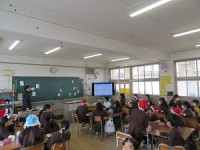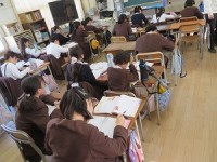 2時間目の授業は図工です。「絵のぐでゆめもよう」の授業で、パスで線を描いて区切ったところに絵の具でもようをかいています。