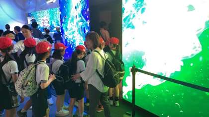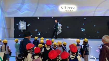 「未来の都市パビリオン」見学中です。中はとても涼しく快適です