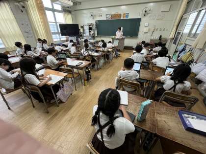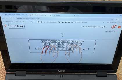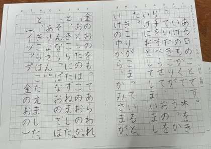 5時間目は書写です。イソップ「金のおの」を手本を見ながら、きれいに書きました。完成した人は、タッチタイピング練習ソフトの「らっこたん」をやっています。