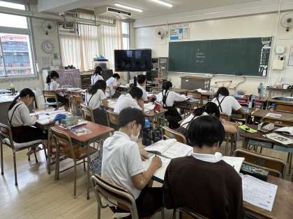 3時間目は算数です。教科書とプリントの問題練習をして、学級担任の先生に確認してもらっています。