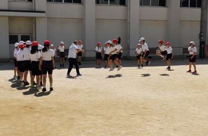 1時間目は体育です。前半は大縄跳び。6人一度に跳べるところまでいきました。後半はリレーの練習をしました。