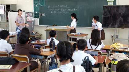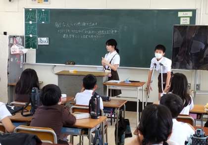 1時間目は特別活動です。話し合って学級の年間目標を決めました。