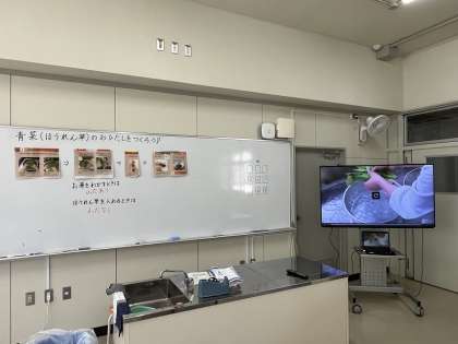 3・4時間目は家庭科の調理実習です。「青菜(ほうれん草)のおひたしをつくろう」。ほうれん草をゆでて、おひたしを作りました。