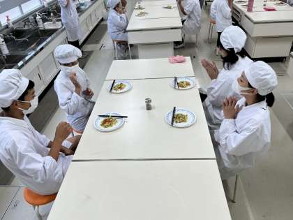 5・6時間目は家庭科の調理実習です。「ハム入り野菜いため」を作りました。キャベツを切るのに苦労しましたが、おいしくできあがったので満足でした。