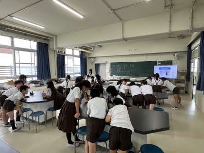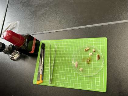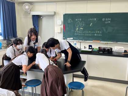 「でんぷんの調べ方」。ヨウ素液で染めてでんぷんができているか調べています。