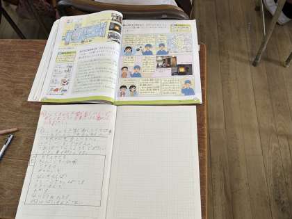 「しょうきゃく工場で働く人々はどのようなことに気をつけてはたらいているだろう」。しょうきゃく工場の図や写真、働く人々へのインタビューをもとに考えています。