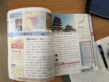 「天皇中心の国づくり」。聖徳太子の国づくりについて学習しています。