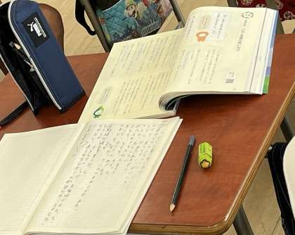 「つなぐ言葉の使い分け」。「だから」「しかし」「すると」「ところが」などのつなぐ言葉を使った例文を考えています。