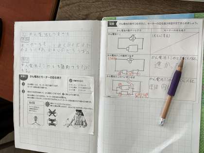 「かんでんちのつなぎ方」のキットを組み立てて、直列と並列のちがいを学習しています。