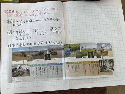 米づくりについて学習しています。お米の値上がりでお百姓さんの米づくりの大変さが報道されるようになっていますね。東淀川区でも井高野あたりではまだ水田が残っています。田植えも6月中旬に終わっていますね。