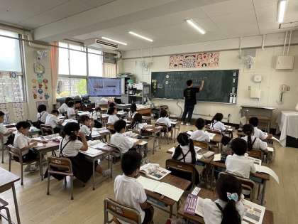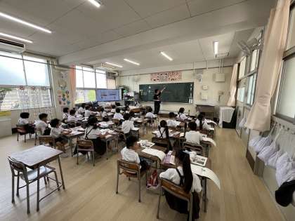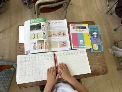 「ながさのくらべかたをかんがえよう」。1くみと同じところを学習しています。
