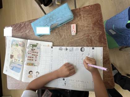 「カタカナ」の学習です。「ボール」「ジャングルジム」「サッカー」の練習をしています。