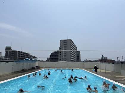 水泳の授業は来週までです。今日は、平泳ぎの練習もしました。泳いだ距離の記録を取っていますが、少しずつ伸びているようです。
