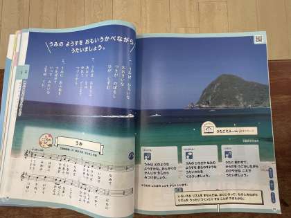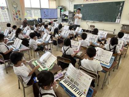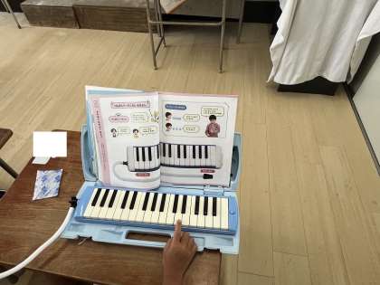 「うみ」を歌った後、けんばんハーモニカの練習をしました。