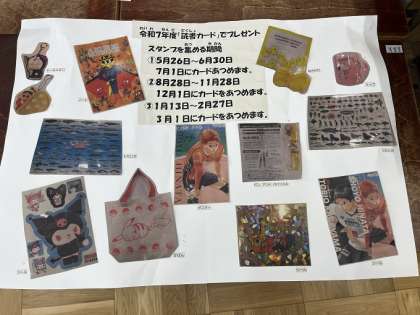 「読書カード」でプレゼントの1学期の期間に、各学年でスタンプ集計が1番多かった児童にプレゼントが渡されます。