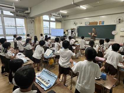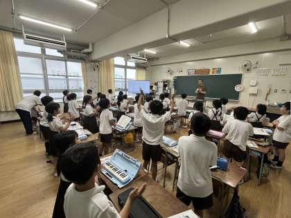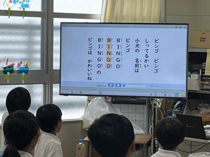 けんばんハーモニカの練習の後、「こいぬのビンゴ」を手拍子をつけながら歌いました。